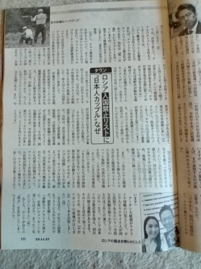 [デイリー新潮 2025/12/1] ロシア入国禁止リストに「日本人カップル」が! そうそうたる面々に名を連ねることになったワケ