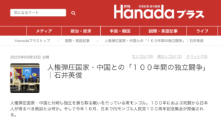 Hanadaプラスに寄稿ー人権弾圧国家・中国との「100年間の独立闘争」